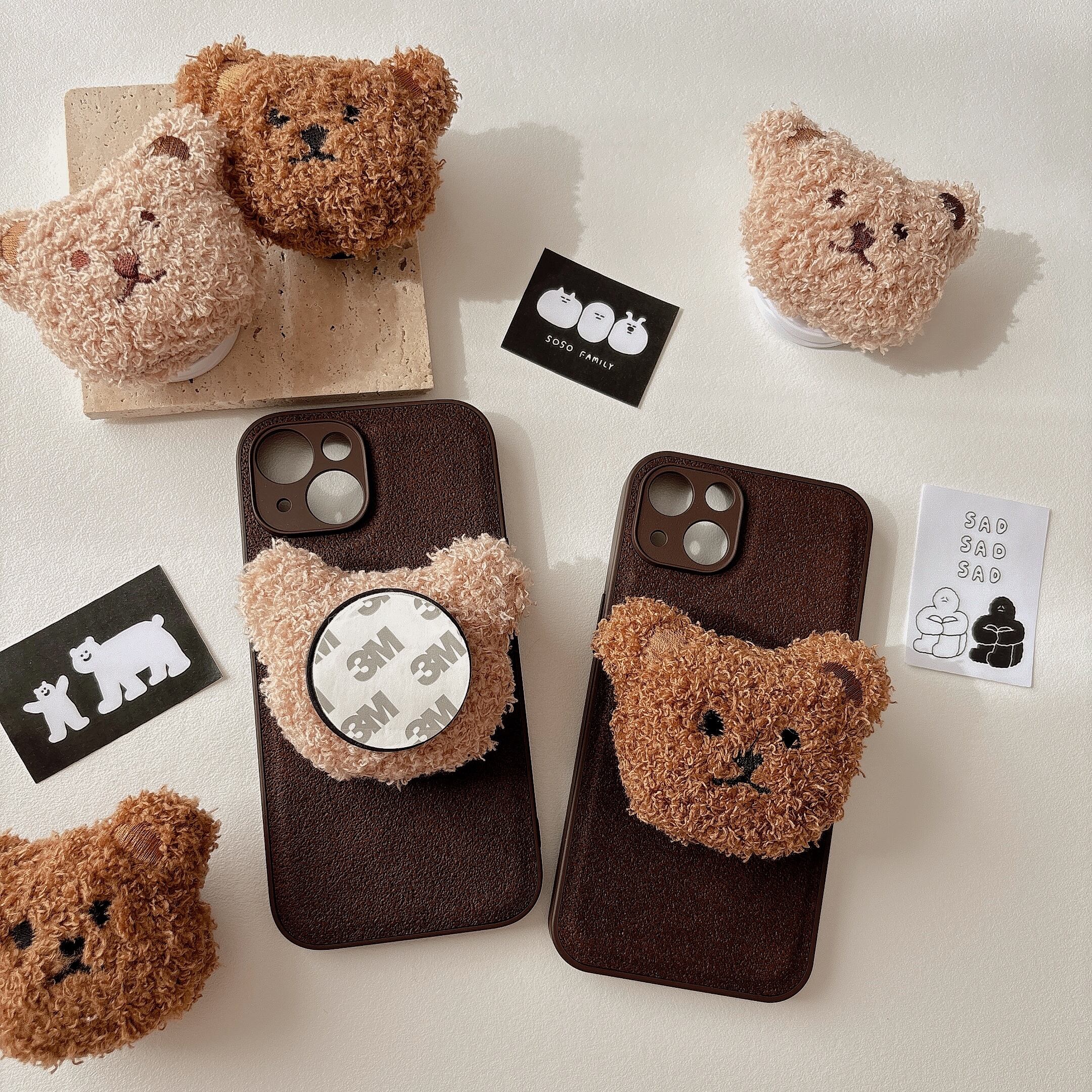 ふわふわくまの可愛いスマホグリップ
